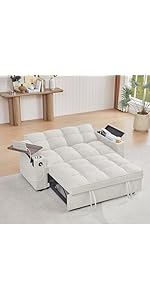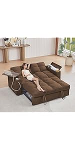 65'' 3-in-1 Folding Convertible Sofa Bed, Pullout Sofa, Modern Chenille Fabric, 360° Swivel Side Table, Easy Assembly, Perfect for Living Room, Black