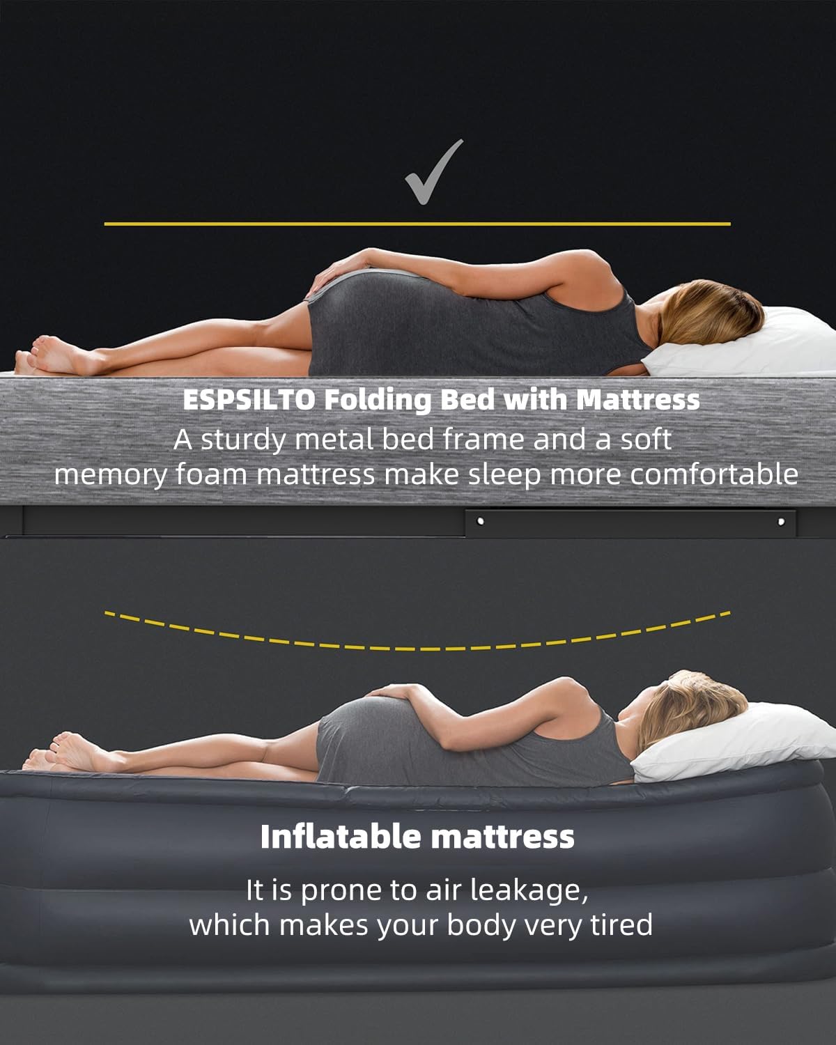 Full Size Folding Bed with Mattress - Extra Large Size 75''x54'' Foldable Rollaway Bed for Guest, Space Saving Fold Up for Easy Storage