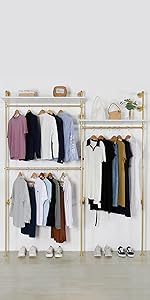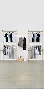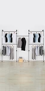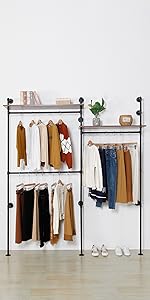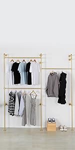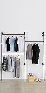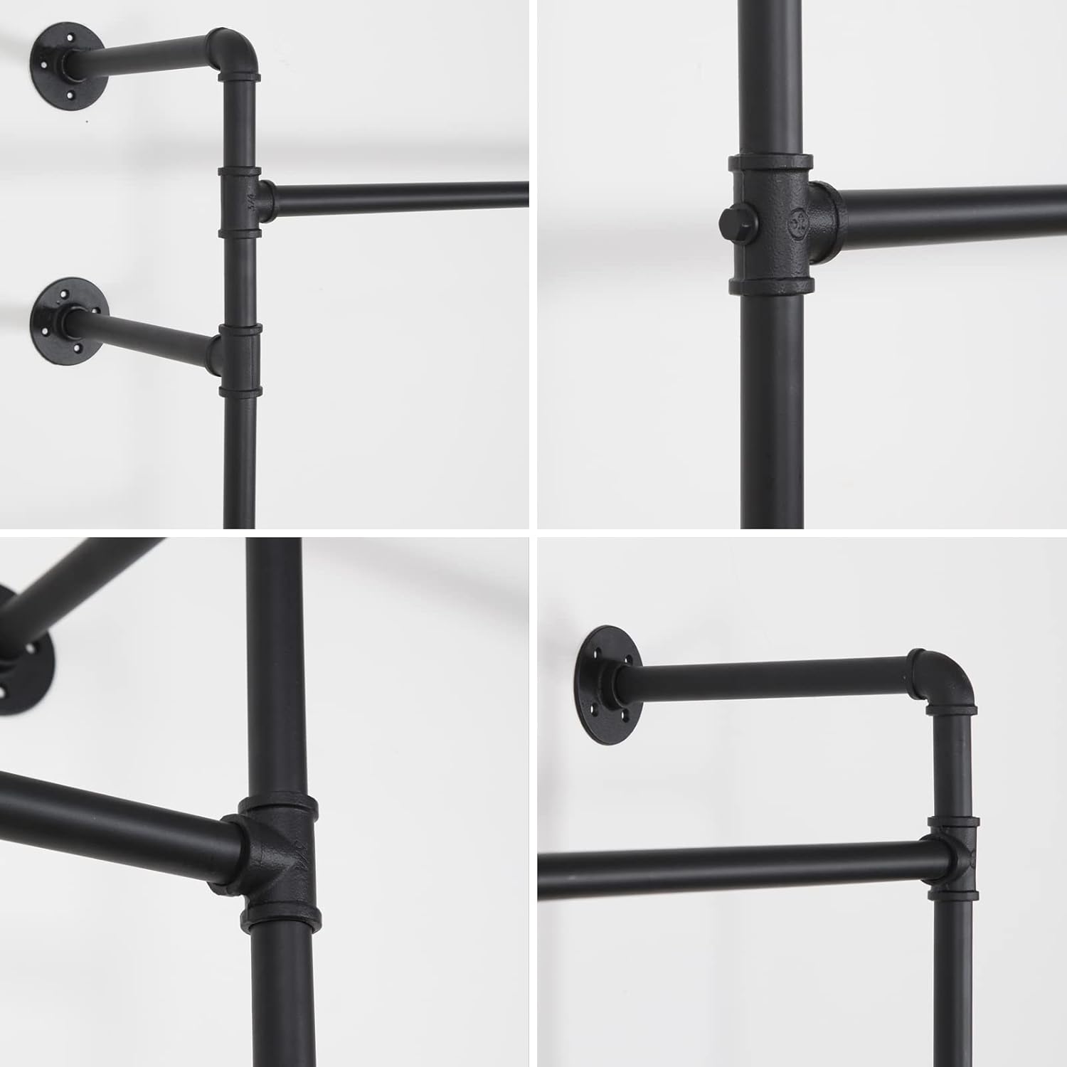 Industrial Pipe Clothes Rack, Heavy Duty Detachable Wall Mounted Black Iron Garment Bar, Clothing Store Display Stands Garment Rack Closet System (125.5 x 93.7inch)