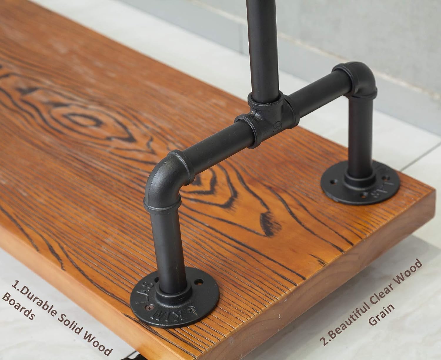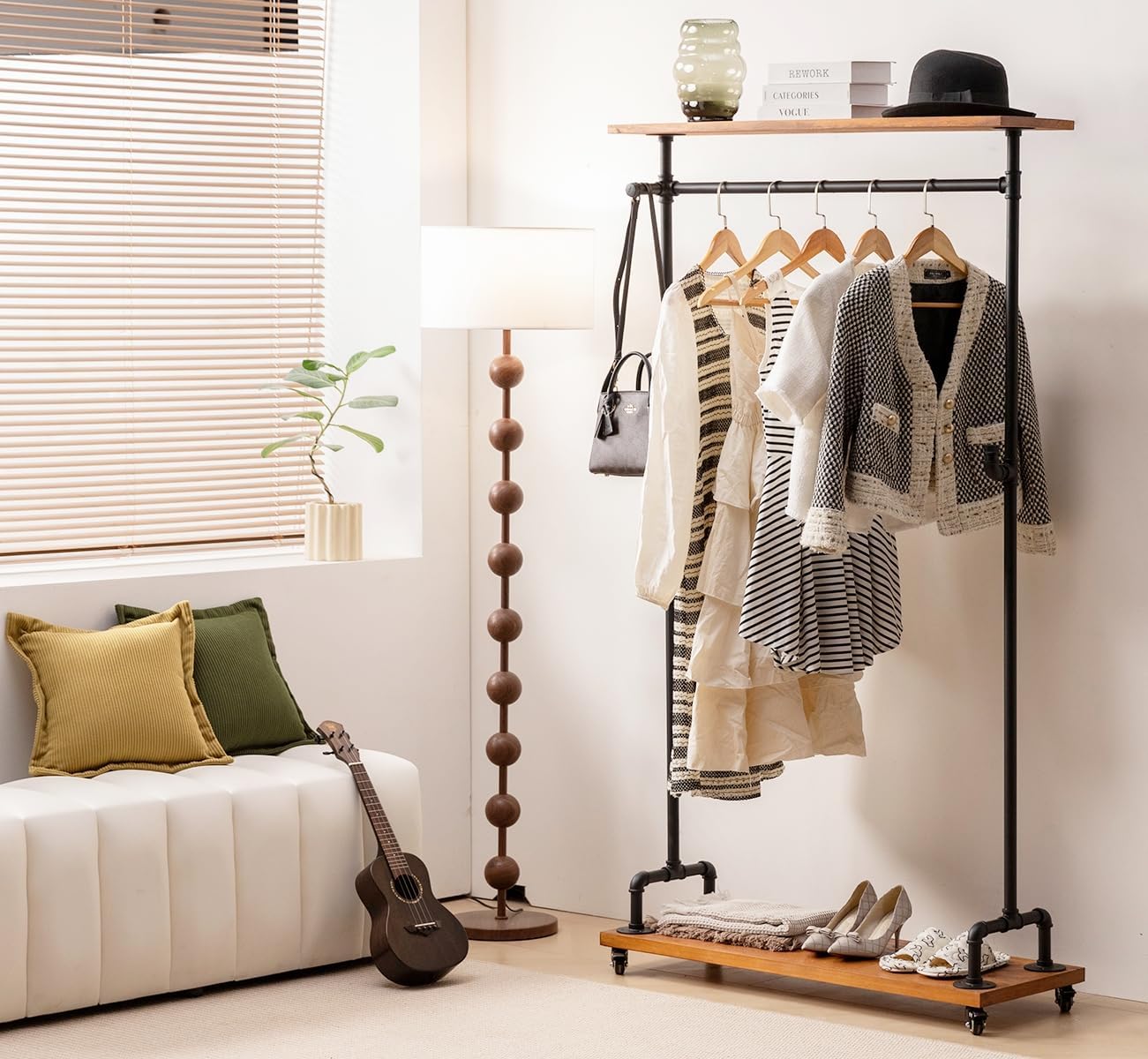 Industrial Pipe Clothing Rack on Wheels, Rolling Iron Garment Racks with Wood Shelves, Commercial Heavy Duty Clothing Racks, Steampunk Clothes Rack Retail (Two Tiers)