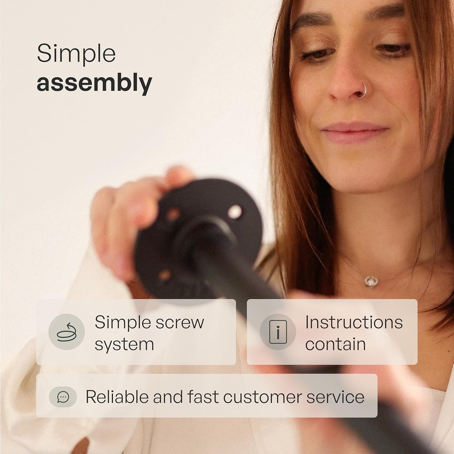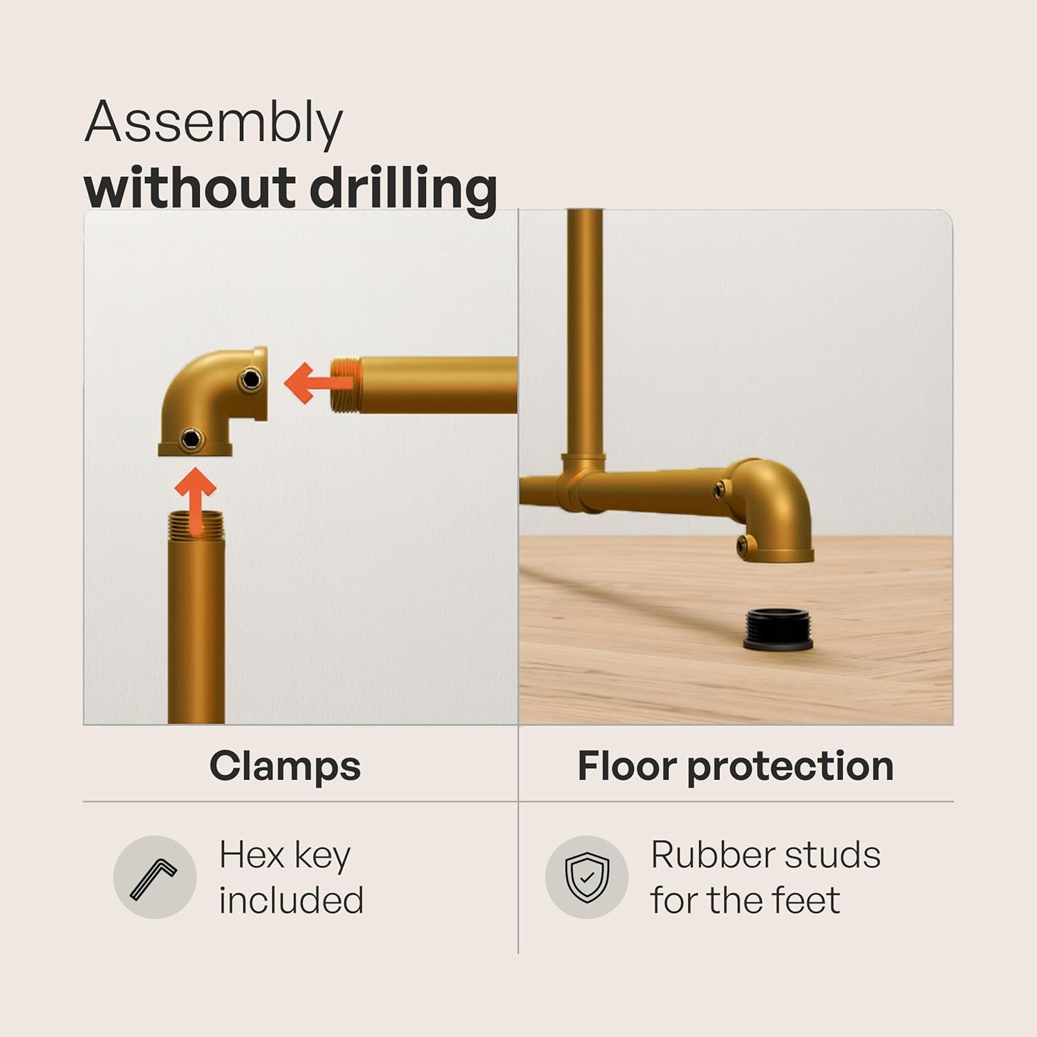 Assembly is quick and straightforward. An Allen key is included, and no additional tools are required. Two people make the process even easier.