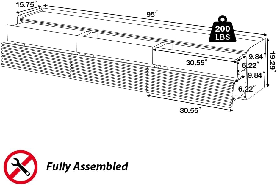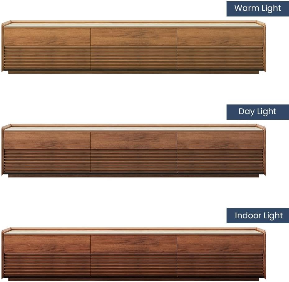 POVISON Fully-Assembled Mid Century Matte Sintered Stone TV Stand, 94.49" Wood Media Console with Adjustable LED Light, Entertainment Center with Storage for Living Room