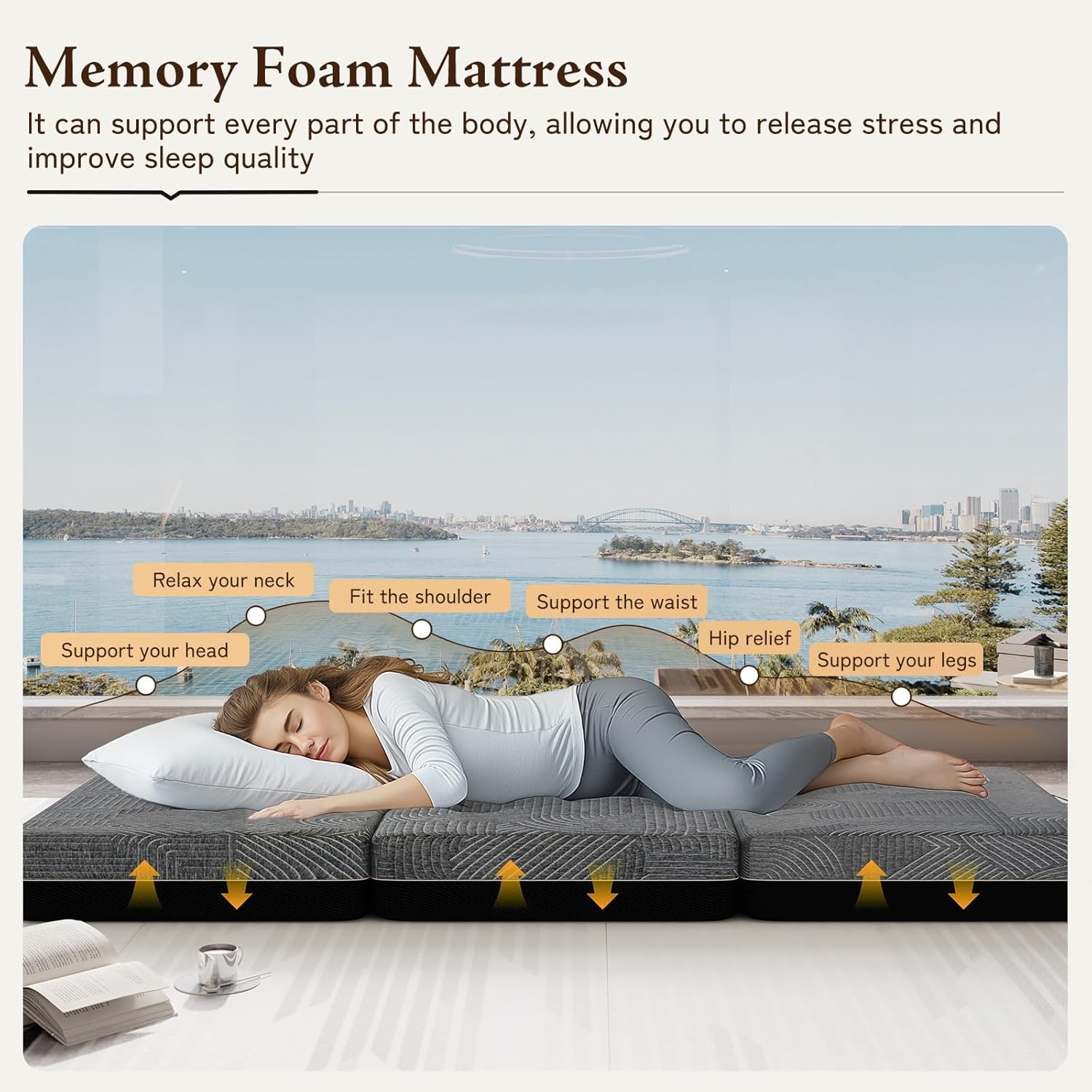 Dual Layer 4 Inch Memory Foam Mattress Topper/Folding Sofa Bed