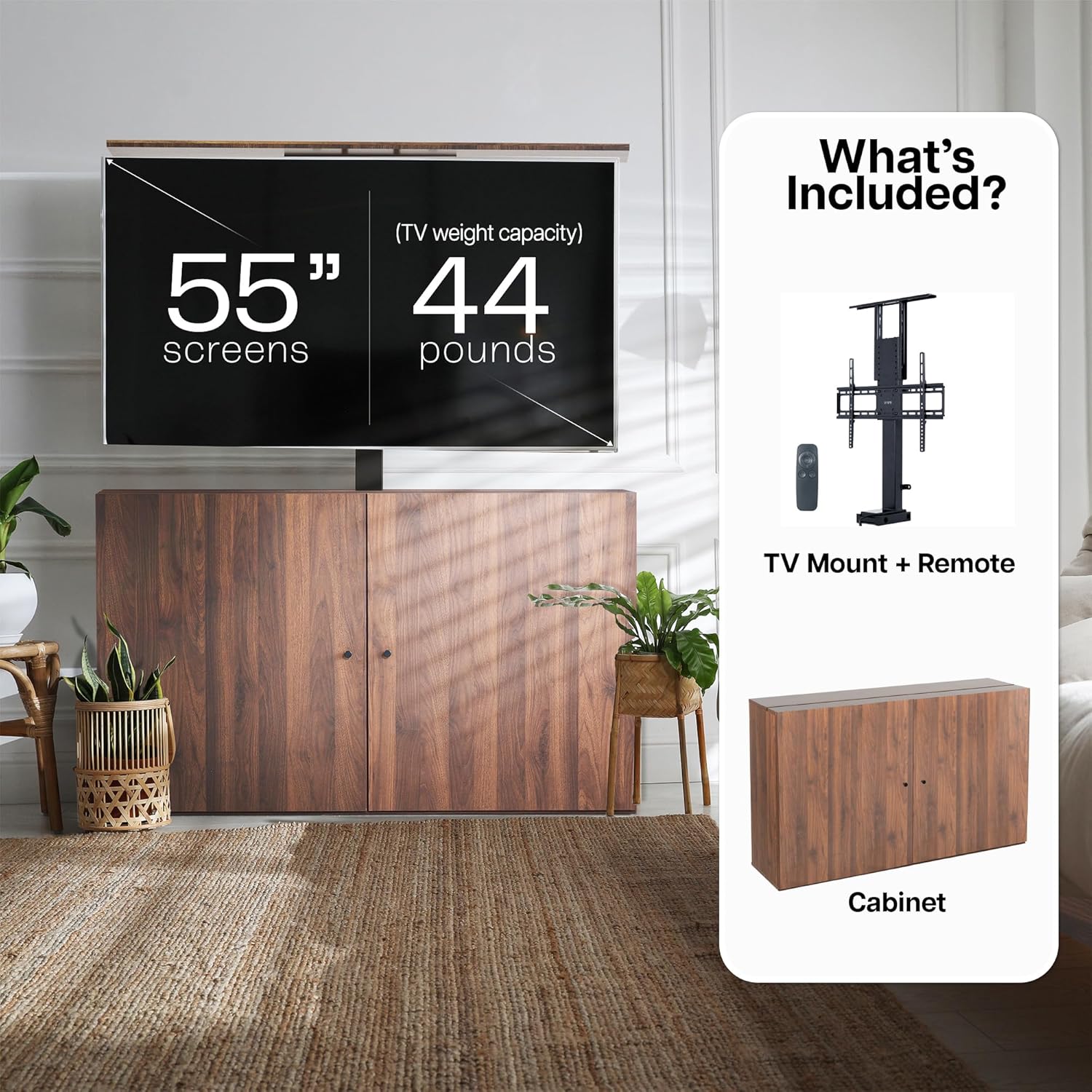 VIVO Walnut TV Cabinet with Motorized Vertical Lift Television Stand, Holds 32 to 55 inch TVs up to 44 lbs, CASE-KIT-EUP1WN